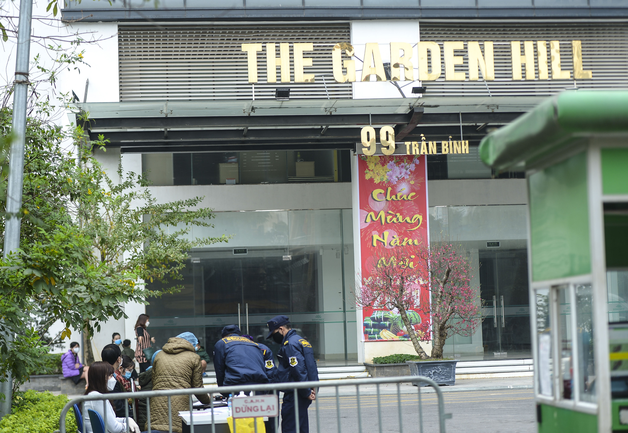 Cơ quan chức năng đã dựng rào chắn, tiến hành phong toả chung cư garden hill, địa chỉ tại 99 trần bình (mỹ đình 2, nam từ liêm, hà nội) để phòng chống dịch bệnh trong số đó, có bệnh nhân n.t.k.a, là nữ sinh năm 1993, địa chỉ tòa nhà garden hill, 99 trần bình, mỹ đình 2, nam từ liêm.